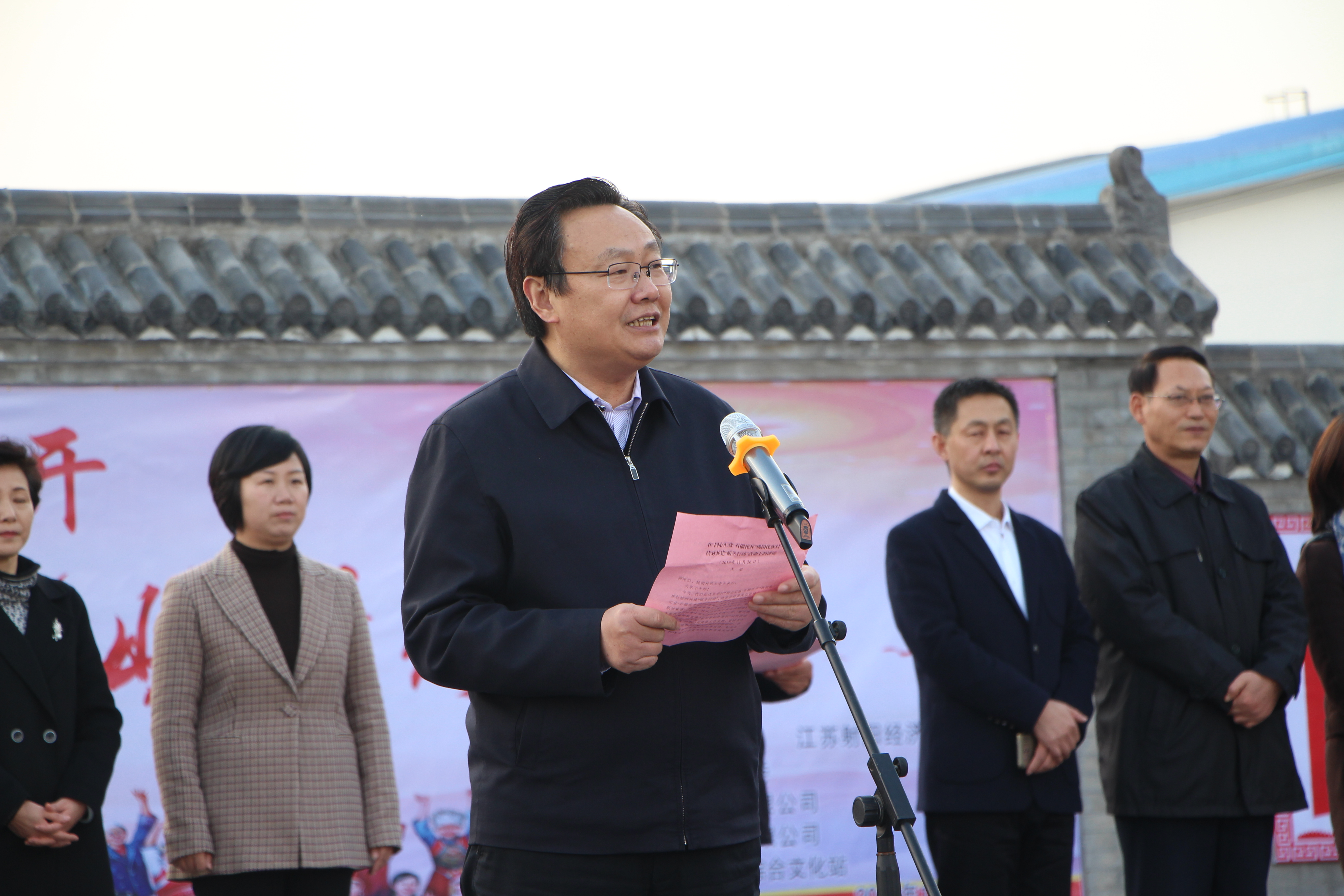 11月26日下午,盐城市委台办在射阳县牵头开展“同心汇盐、石榴花开”桃园民族村结对共建“暖冬行动”。市委常委、统战部部长王荣出席并讲话,市委台办主任尹贵尧主持,射阳县委副书记、县长吴冈玉致辞。九三学社盐城市委、射阳县委统战部、盐城同人置业有限公司和盐城怡美食品有限公司等结对共建相关单位负责人和少数民族村群众代表参加活动。
